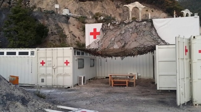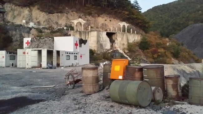 혜성병원 의료봉사팀이 자리를 잡은 메디큐브 컨테이너들이 놓여 있는 태백세트장.